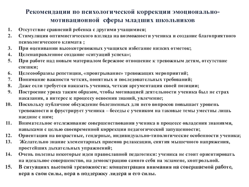 Психологические условия коррекции: