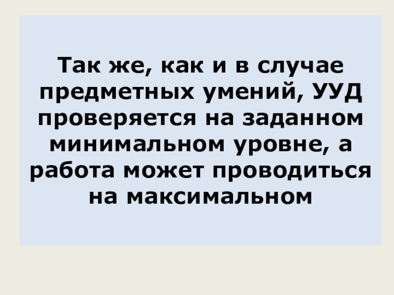 Слайд 35Так же, как и в случае предметных умений, УУД проверяется на