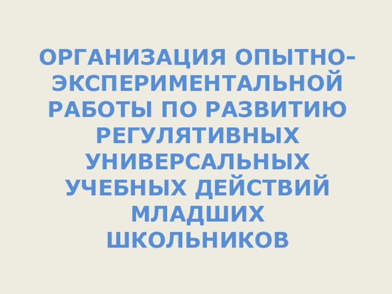 Слайд 44ОРГАНИЗАЦИЯ ОПЫТНО-ЭКСПЕРИМЕНТАЛЬНОЙ РАБОТЫ ПО РАЗВИТИЮ РЕГУЛЯТИВНЫХ УНИВЕРСАЛЬНЫХ УЧЕБНЫХ ДЕЙСТВИЙ МЛАДШИХ ШКОЛЬНИКОВ