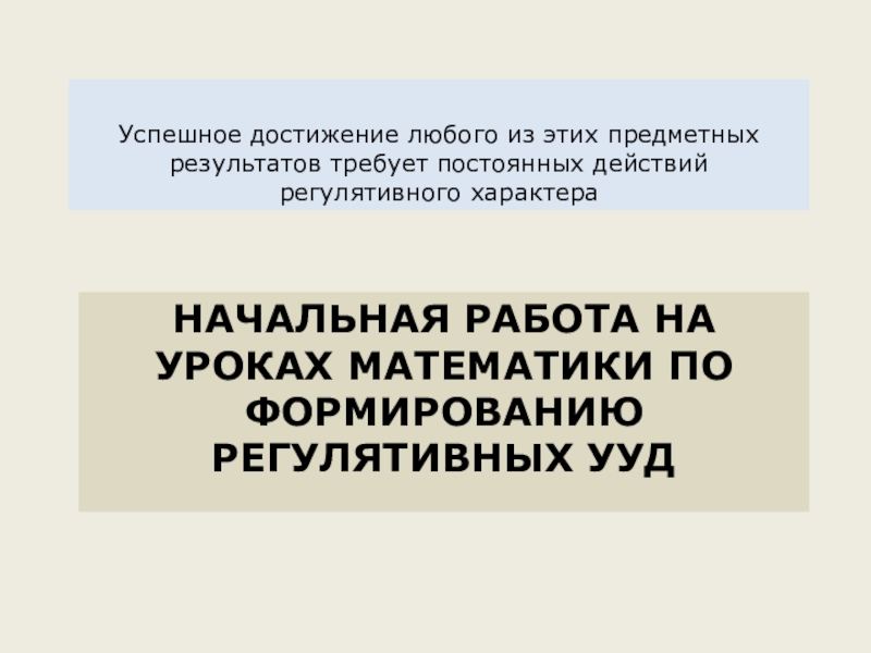 Слайд 34НАЧАЛЬНАЯ РАБОТА НА УРОКАХ МАТЕМАТИКИ ПО ФОРМИРОВАНИЮ РЕГУЛЯТИВНЫХ УУД