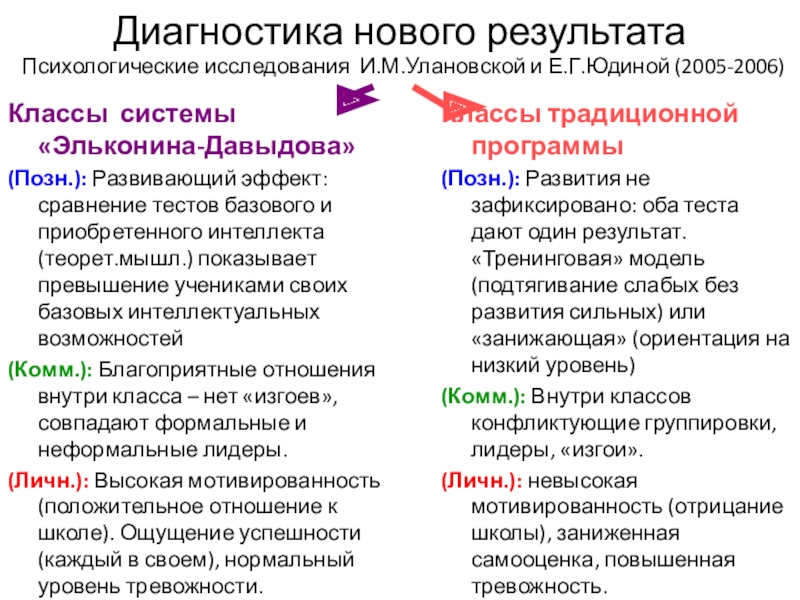 Психологические исследования И.М.Улановской и Е.Г.Юдиной (2005-2006)