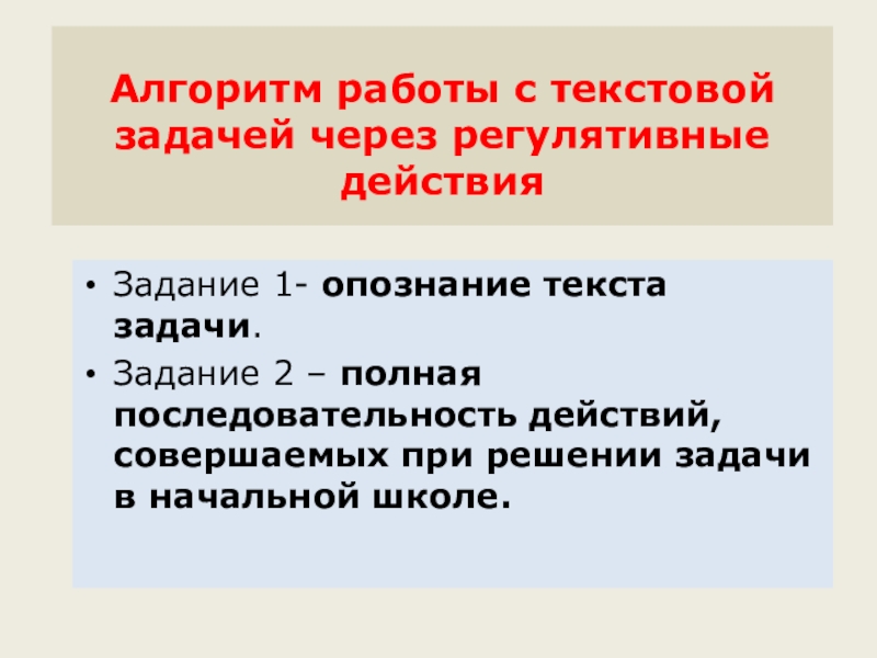 Алгоритм работы с текстовой задачей через регулятивные действия