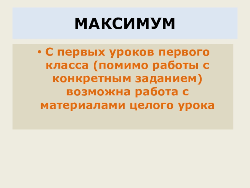 С первых уроков первого класса (помимо работы с конкретным заданием) возможна