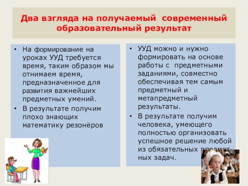 Слайд 9Два взгляда на получаемый современный образовательный результат