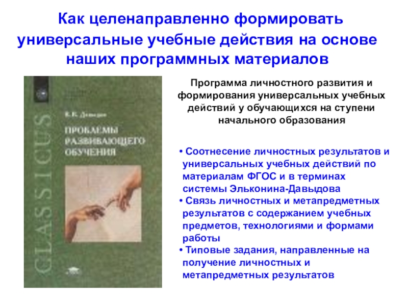 Слайд 10 Как целенаправленно формировать универсальные учебные действия на основе наших программных