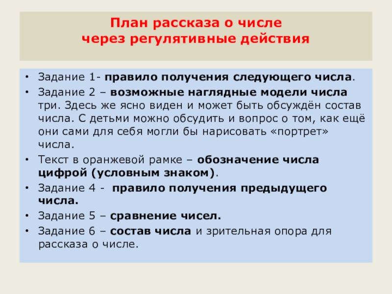 Текст в оранжевой рамке – обозначение числа цифрой (условным знаком).