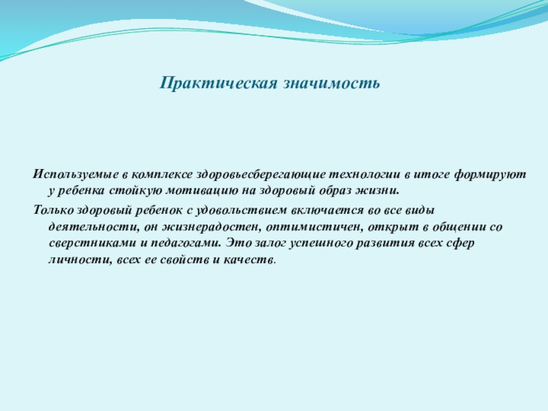 Используемые в комплексе здоровьесберегающие технологии в итоге формируют у ребенка