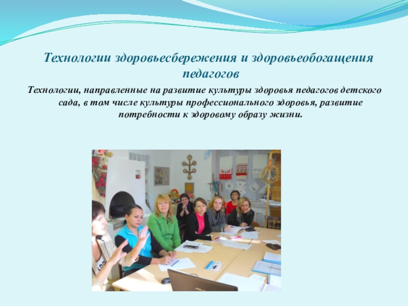 Слайд 11 Технологии здоровьесбережения и здоровьеобогащения педагогов