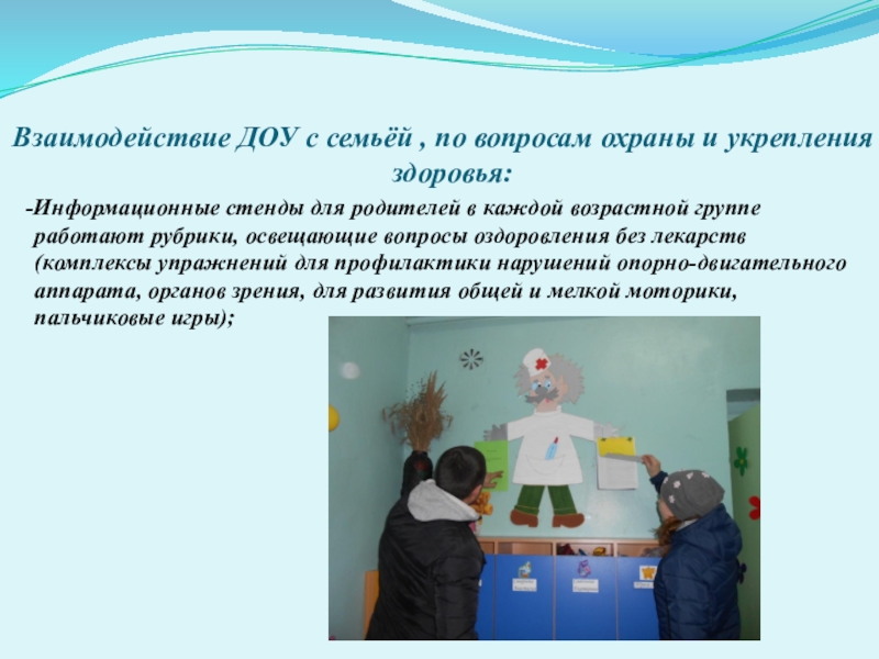 Слайд 13Взаимодействие ДОУ с семьёй , по вопросам охраны и укрепления здоровья: