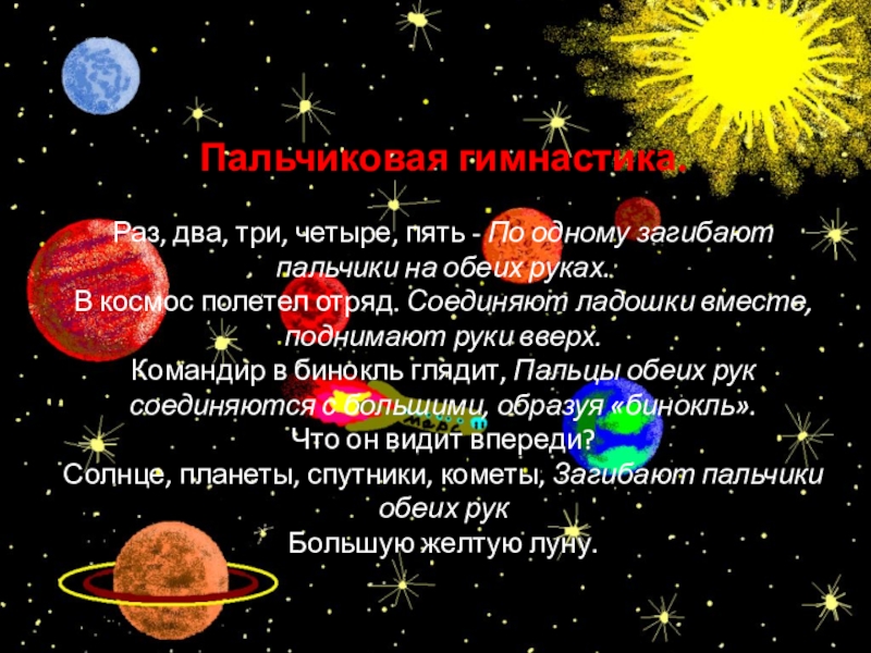 Солнце, планеты, спутники, кометы, Загибают пальчики обеих рук