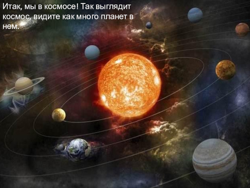 Слайд 8Итак, мы в космосе! Так выглядит космос, видите как много планет