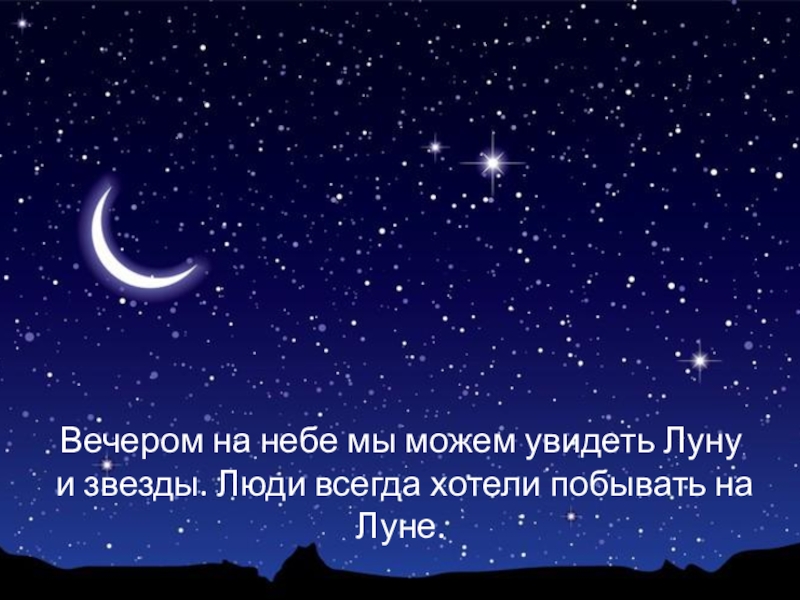 Слайд 11Вечером на небе мы можем увидеть Луну и звезды. Люди всегда