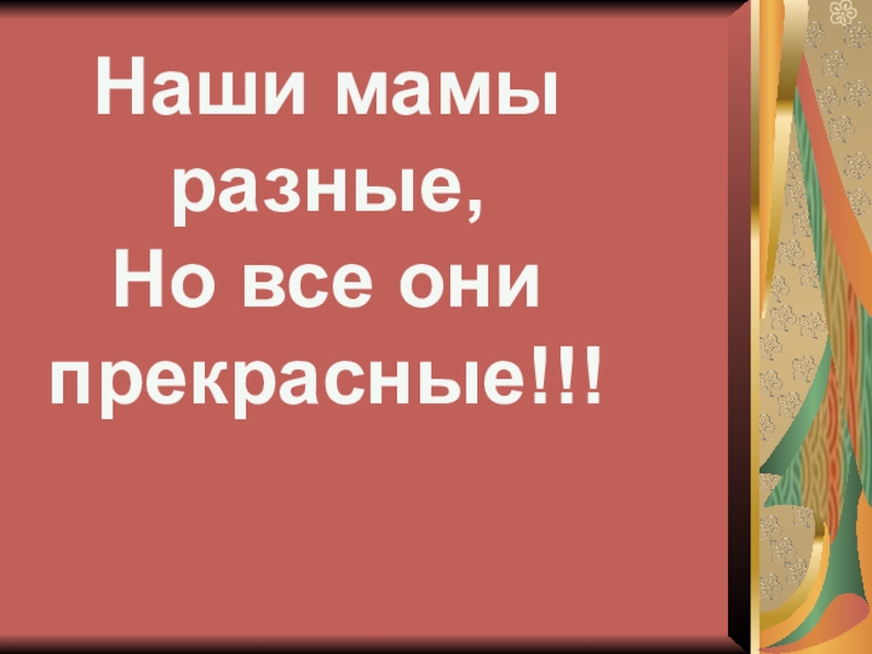 Наши мамы разные,Но все они    прекрасные!!!