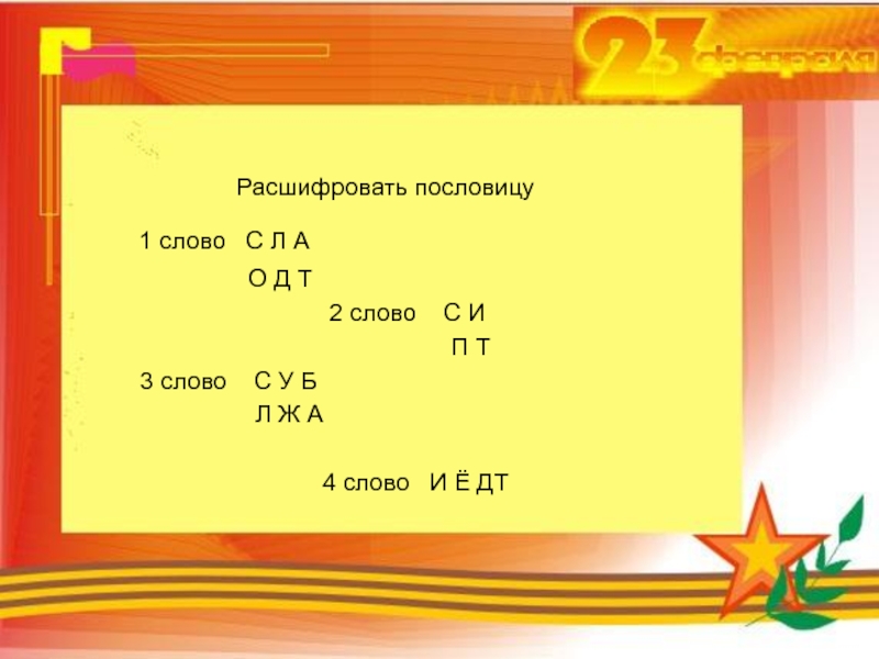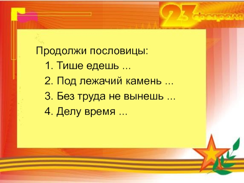 Слайд 123 февраля – День защитника Отечества