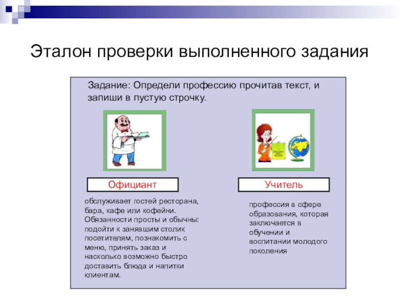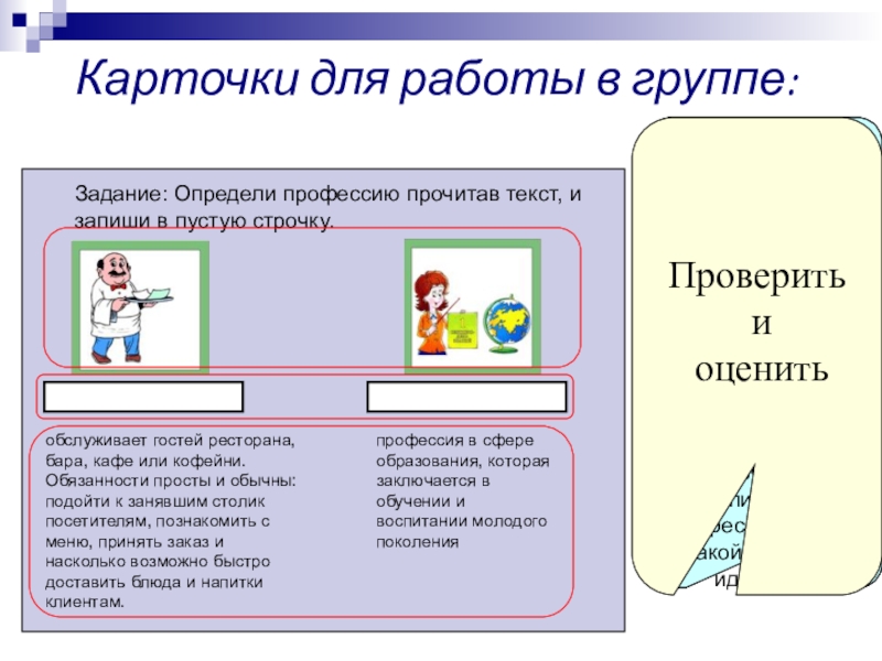 В верхней части карточки картинки, на которых изображены люди разных профессий