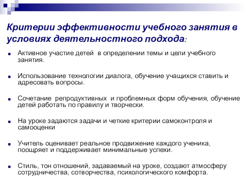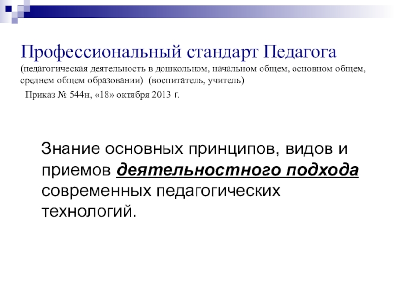 Знание основных принципов, видов и приемов деятельностного подхода современных педагогических технологий.