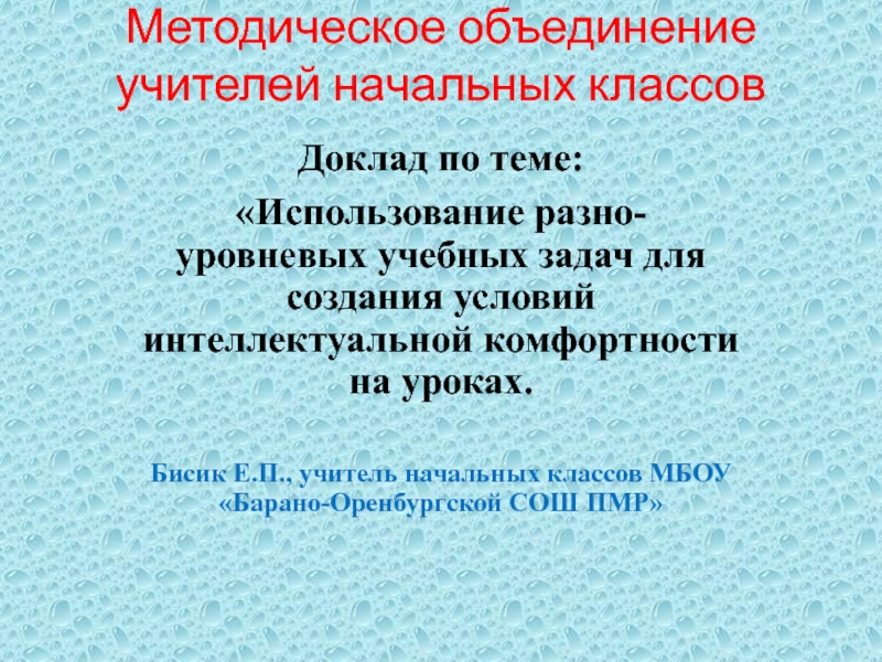 Бисик Е.П., учитель начальных классов МБОУ «Барано-Оренбургской СОШ ПМР»