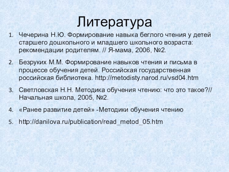 Светловская Н.Н. Методика обучения чтению: что это такое?// Начальная школа, 2005, №2.