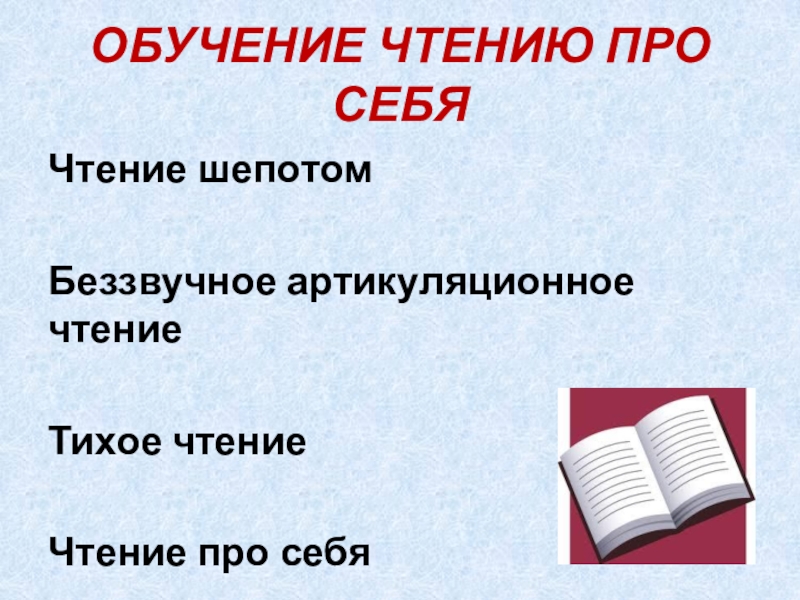 Слайд 9ОБУЧЕНИЕ ЧТЕНИЮ ПРО СЕБЯ