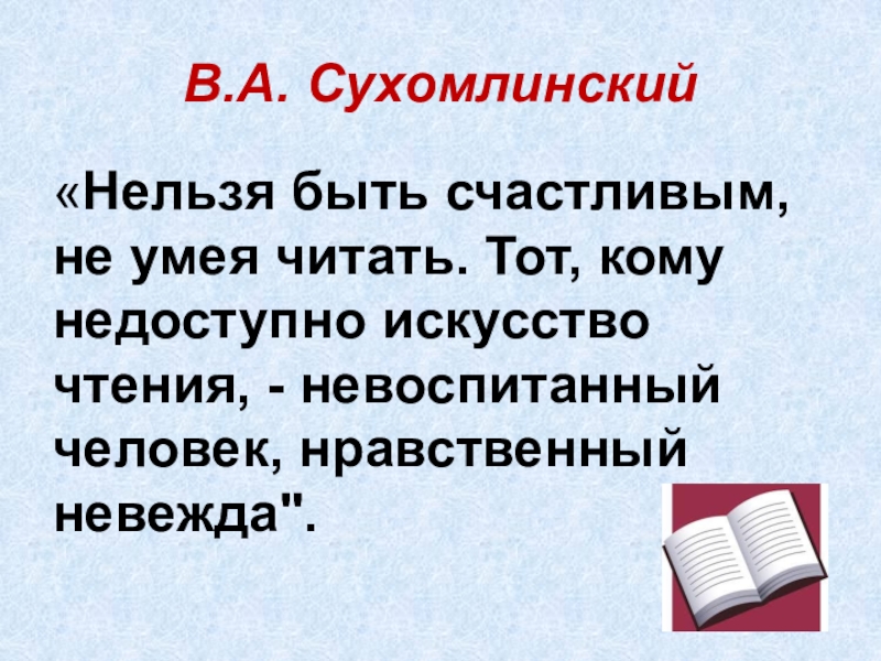 «Нельзя быть счастливым, не умея читать. Тот, кому недоступно