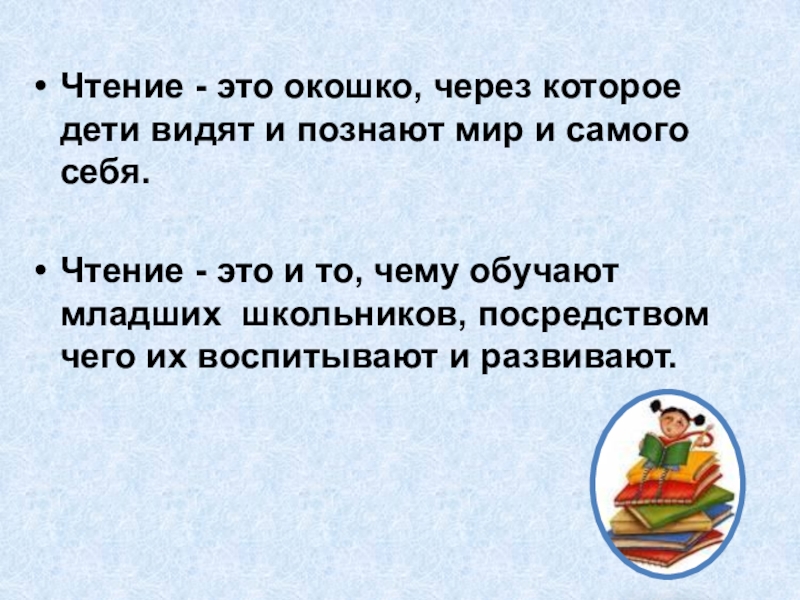 Слайд 2Чтение - это окошко, через которое дети видят и познают мир