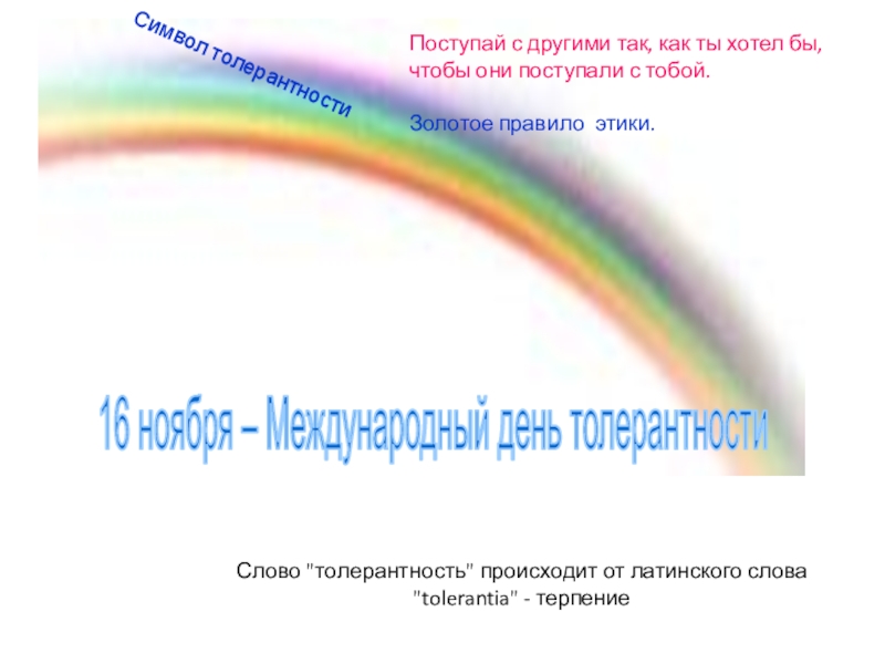 Слово "толерантность" происходит от латинского слова "tolerantia" - терпение