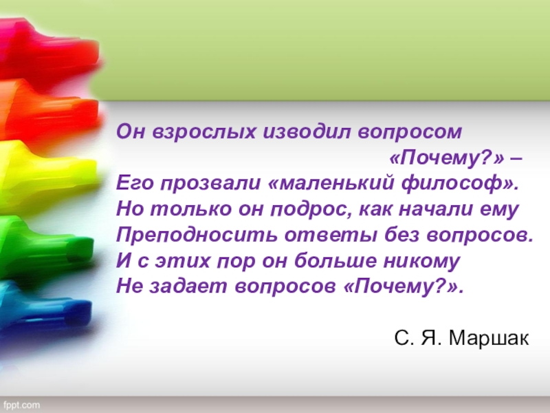 Он взрослых изводил вопросом «Почему?» – Его прозвали «маленький философ».Но только он подрос,