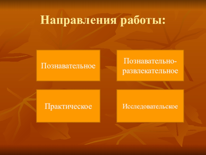 Направления работы:ИсследовательскоеПознавательно-развлекательное ПознавательноеПрактическое