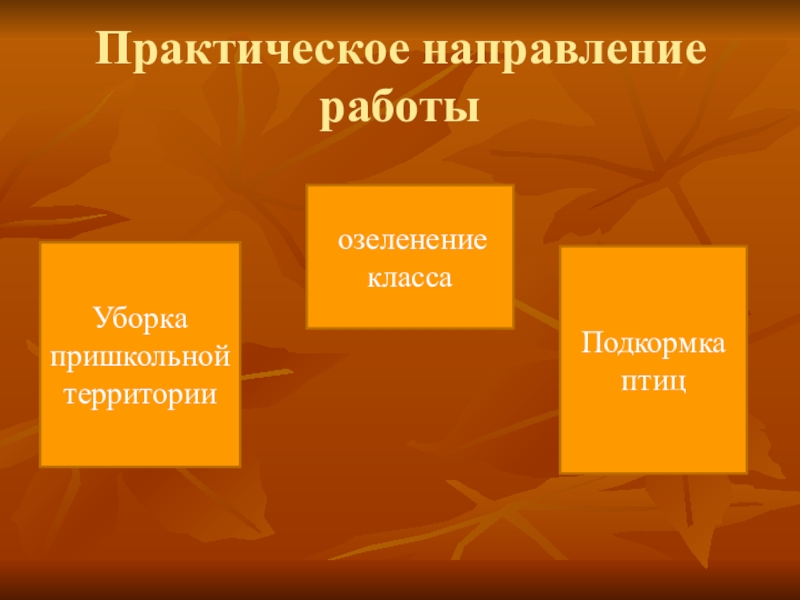 Практическое направление работыУборка пришкольной территории озеленение классаПодкормка птиц