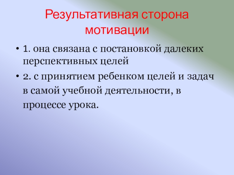 принятием ребенком целей и задач в самой учебной деятельности, в процессе урока.