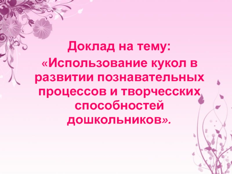 Доклад на тему:«Использование кукол в развитии познавательных процессов и творчесских способностей дошкольников».