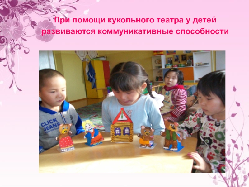Слайд 12При помощи кукольного театра у детей развиваются коммуникативные способности