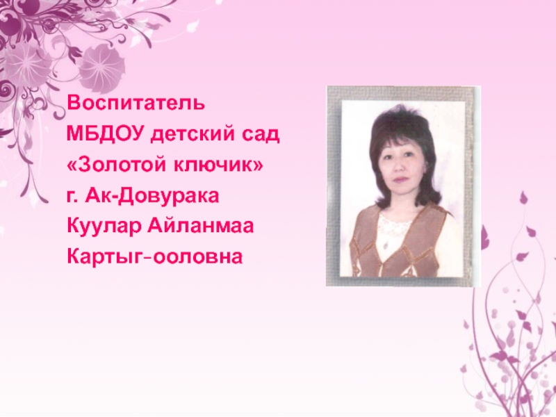 ВоспитательМБДОУ детский сад «Золотой ключик» г. Ак-ДовуракаКуулар Айланмаа Картыг-ооловна