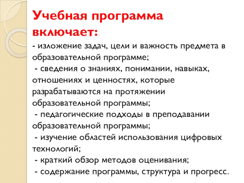 Слайд 7Учебная программа включает: