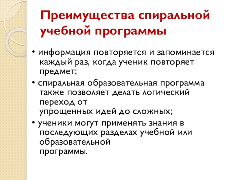 Слайд 12Преимущества спиральной учебной программы