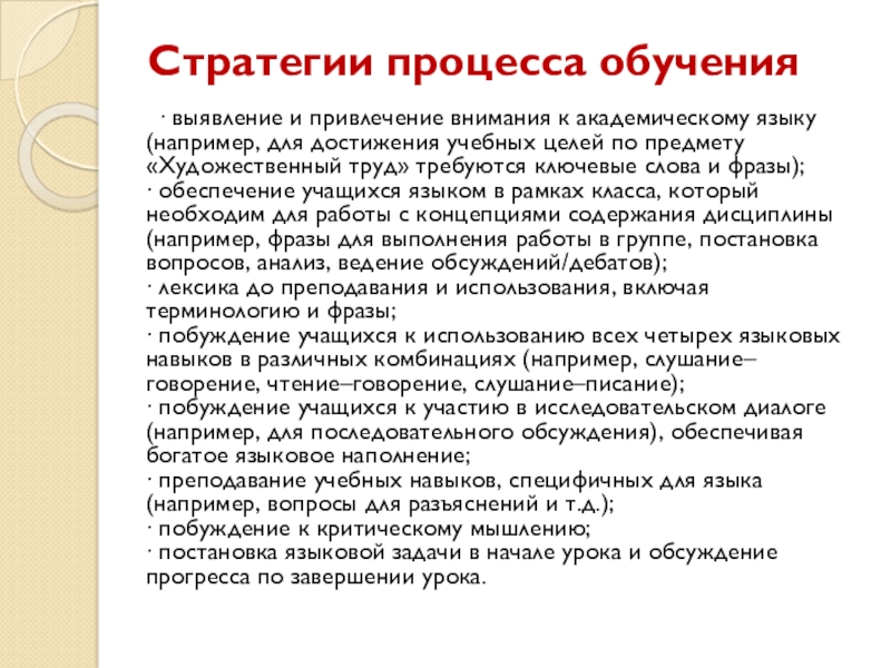 Слайд 8Стратегии процесса обучения