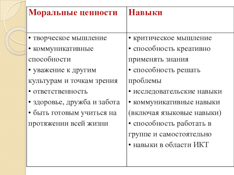 - сведения о знаниях, понимании, навыках, отношениях и ценностях, которые разрабатываются на протяжении образовательной программы;