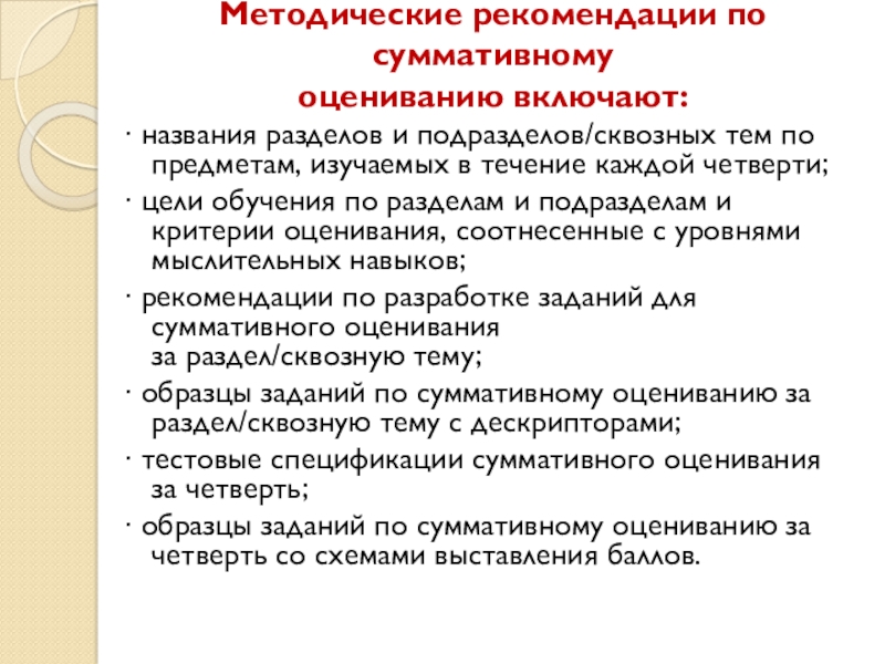 Слайд 21Методические рекомендации по суммативному