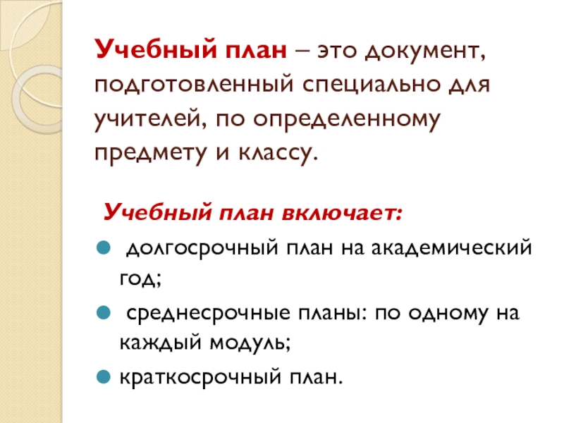 Слайд 15Учебный план – это документ, подготовленный специально для учителей, по определенному