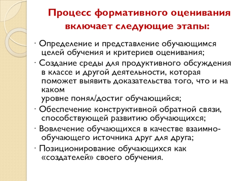 Слайд 22 Процесс формативного оценивания включает следующие этапы: