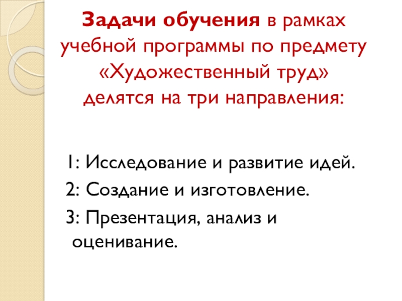 Слайд 9Задачи обучения в рамках учебной программы по предмету «Художественный труд»