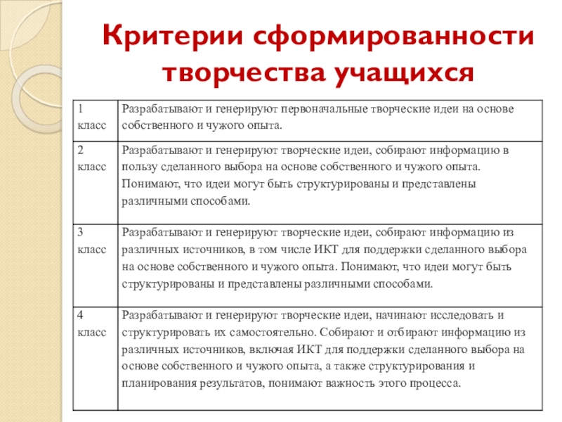 Слайд 14Критерии сформированности творчества учащихся