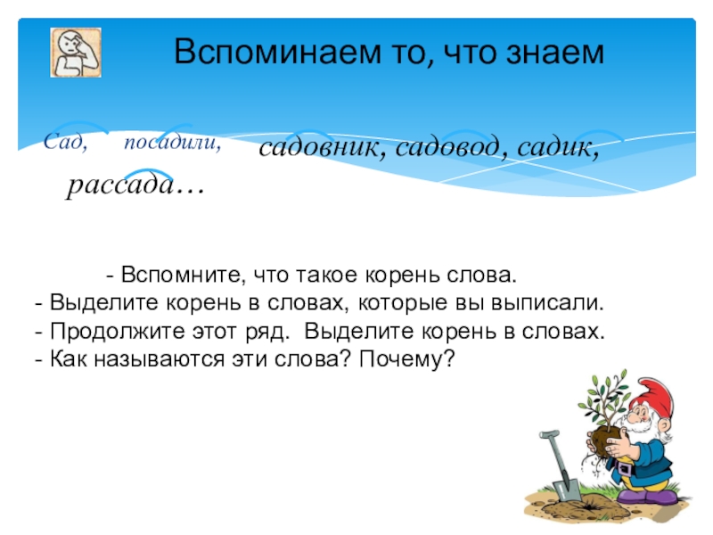 - Какое слово было родоначальником всех остальных? Допишите его.