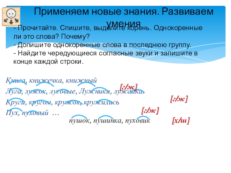- Найдите чередующиеся согласные звуки и запишите в конце каждой строки.