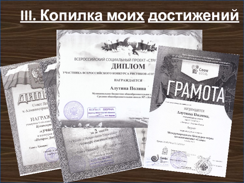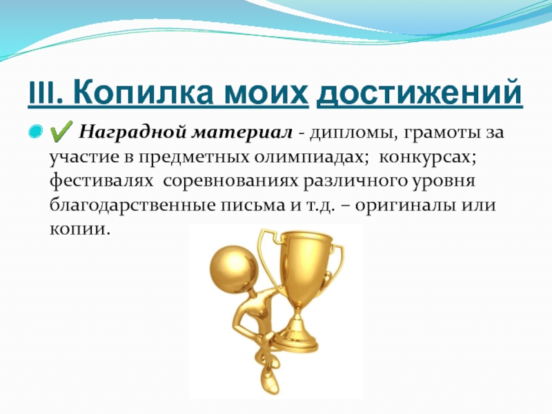 Портфолио документов – комплект индивидуальных образовательных достижений ученика.