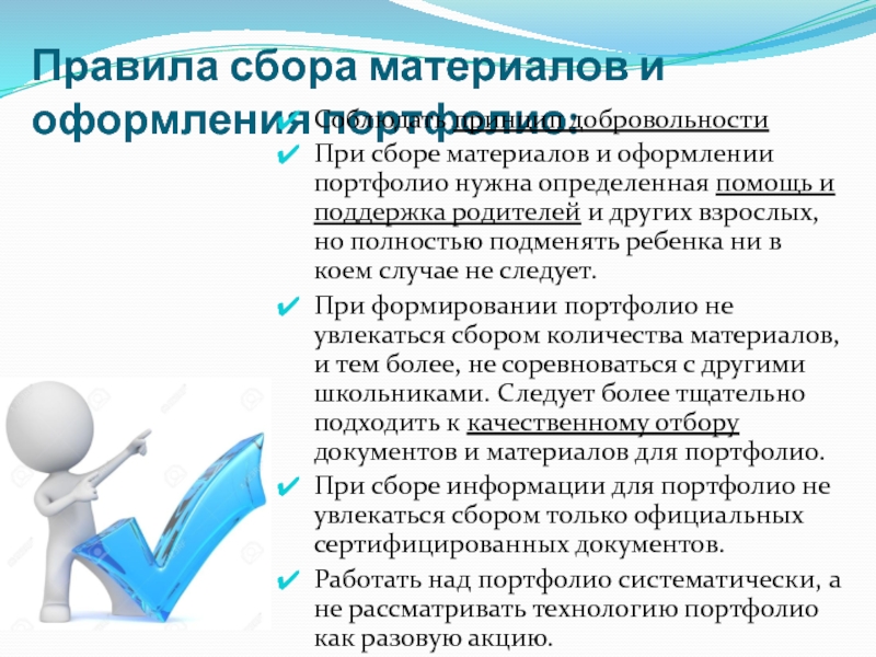 Слайд 10Правила сбора материалов и оформления портфолио:
