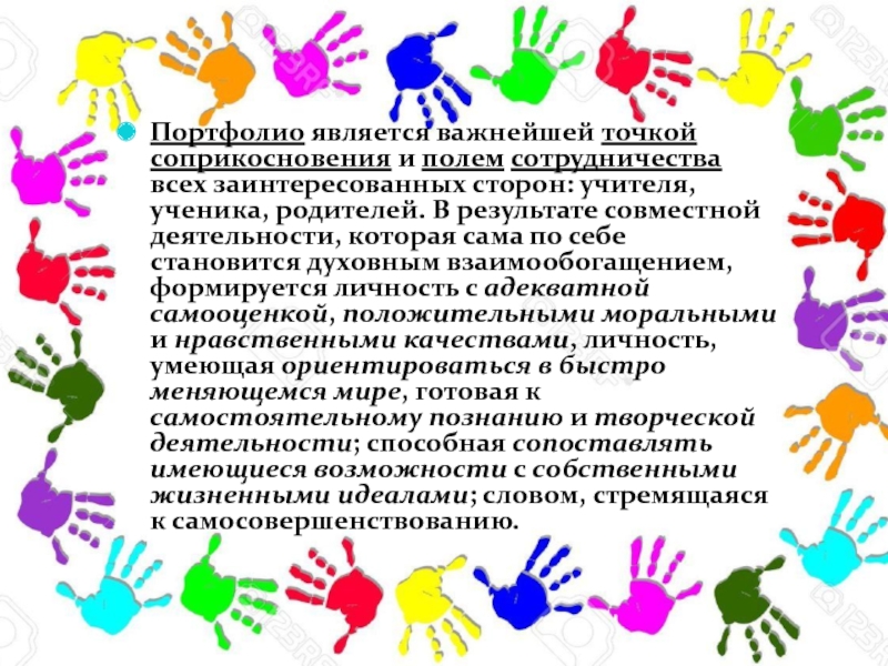Слайд 27Портфолио является важнейшей точкой соприкосновения и полем сотрудничества всех заинтересованных сторон: