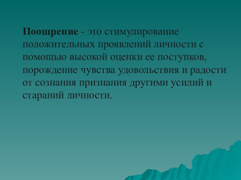 Слайд 2Поощрение - это стимулирование положительных проявлений личности с помощью высокой оценки ее
