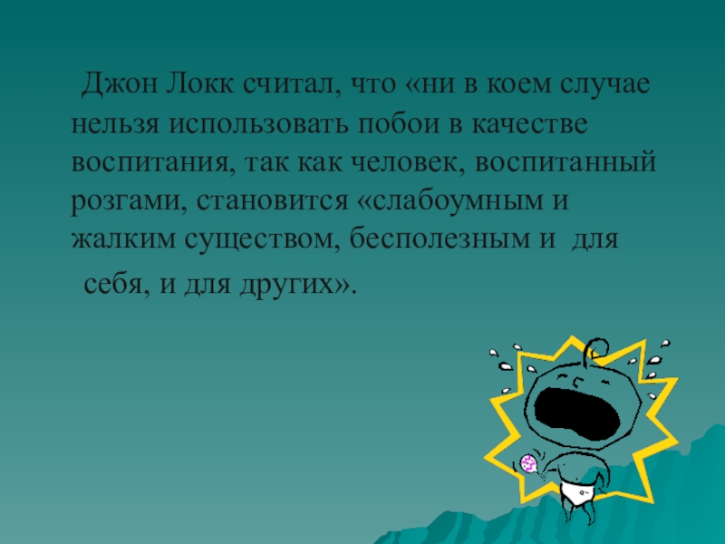 Джон Локк считал, что «ни в коем случае нельзя использовать побои в качестве воспитания, так