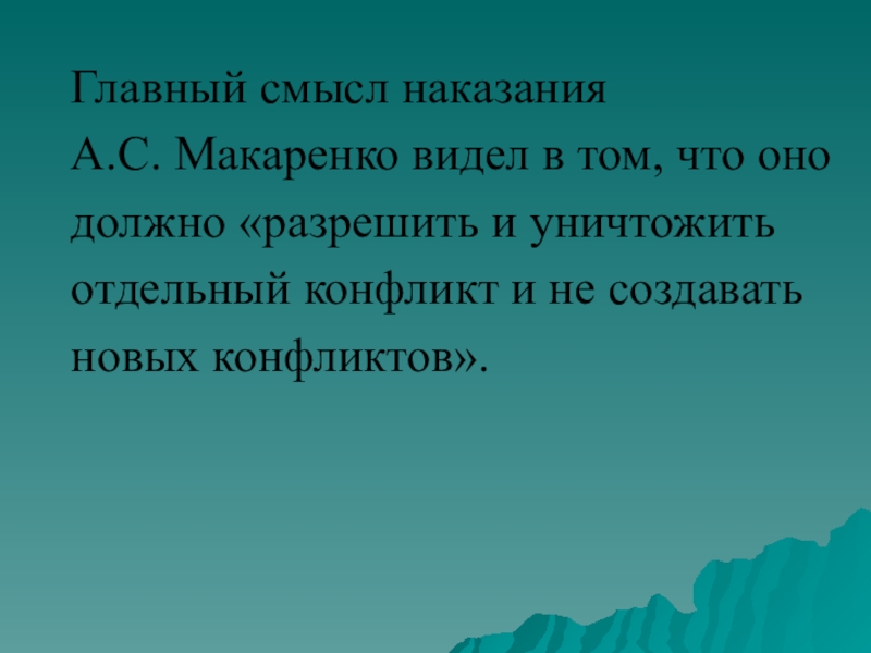 Главный смысл наказания  А.С. Макаренко видел в том, что оно должно «разрешить и уничтожить отдельный конфликт